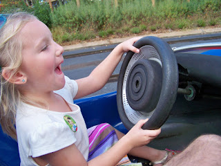 We all got a good giggle when the girls drove the race cars. Trey and I had to push the petals but the girls were able to stear.